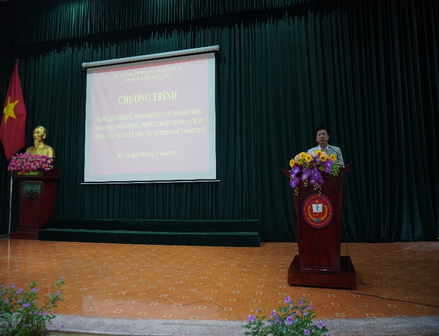 Tại Hội nghị, đồng chí Ngô Văn Ất, Bí thư đảng ủy, Giám đốc Cơ sở đã tổng kết đợt phát động thi đua từ 26/6/2024 đến 10/10/ 2024 và phát động phong trào thi đua chào mừng các ngày Lễ lớn từ ngày 10/10/2024 đến 03/02/2025. Nội dung thi đua tập trung hoàn thành xuất sắc các nhiệm vụ, chỉ tiêu, kế hoạch công tác; nâng cao chất lượng, hiệu quả công việc được giao. Gắn đợt triển khai việc “Học tập và làm theo tư tưởng, đạo đức, phong cách Hồ Chí Minh” và thực hiện chủ đề công tác năm 2024 của Thành phố “Kỷ cương, trách nhiệm, hành động, sáng tạo phát triển”. Tăng cường kỷ cương công tác, kỷ luật lao động. Xây dựng đơn vị sạch đẹp, văn minh, lịch sự. Nâng cao chất lượng, hiệu quả công tác quản lý, giáo dục học viên. Thúc đẩy phong trào thi đua sôi nổi trong toàn Cơ sở, phát hiện, xây dựng, bồi dưỡng, tôn vinh, nhân rộng các tập thể, cá nhân điển hình tiên tiến. Đẩy mạnh các hoạt động văn hóa, văn nghệ, thể dục thể thao tạo không khí đoàn kết, phấn khởi trong đơn vị. Tổ chức tuyên truyền, vận động cán bộ, học viên tích cực hưởng ứng đợt thi đua do Cơ sở phát động. Để thực hiện tốt phong trào thi đua, đồng chí Ngô Văn Ất yêu cầu các phòng tiếp tục đổi mới sáng tạo, thực hiện hiệu quả nhiệm vụ trong tình hình mới. Triển khai có hiệu quả chương trình công tác năm 2025 của đơn vị và nỗ lực, phấn đấu hoàn thành xuất sắc các nhiệm vụ chính trị. Thông qua hội nghị đồng chí đã ghi nhận và biểu dương những nỗ lực cố gắng của tập thể cán bộ, học viên toàn đơn vị trong đợt phát động thi đua vừa qua. Đồng chí khẳng định những kết quả đạt được là sự cố gắng không ngừng nghỉ và tinh thần đoàn kết của tập thể cán bộ và học viên. Đồng chí cũng đề nghị trong thời gian tới, tập thể cán bộ và học viên cần tiếp tục phát huy hơn nữa vai trò và trách nhiệm của mình, khắc phục mọi khó khăn, đoàn kết thống nhất thực hiện tốt các nhiệm vụ chính trị của đơn vị. Để động viên kịp thời các đồng chí cán bộ và anh em học viên đã có nhiều thành tích trong đợt phát động thi đua, Ban Giám đốc đơn vị đã khen thưởng 10 cán bộ; 06 học viên đạt thành tích xuất sắc trong đợt thi đua.