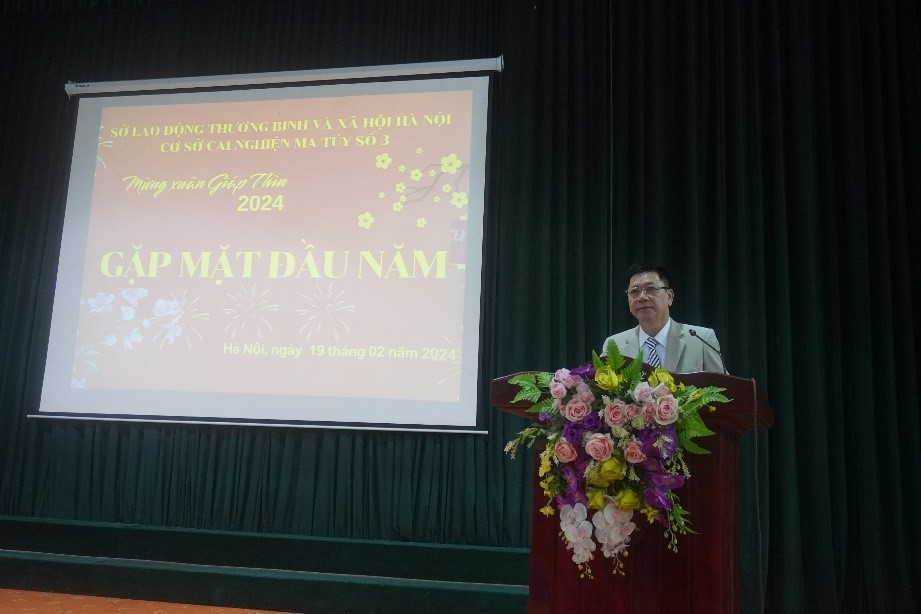 Trong không khí hân hoan, phấn khởi đầu xuân Giáp thìn 2024, ngày19/02/2024 Cơ sở tổ chức buổi Gặp mặt cán bộ viên chức, người lao động và người nghiện. Đây có thể coi là một nét văn hóa đẹp, có truyền thống đã được duy trì từ lâu tại Cơ sở Cai nghiện ma túy số 3 Hà Nội. Nhân dịp đầu Xuân mới, thay mặt Ban Giám đốc, đồng chí Ngô Văn Ất - Bí thư Đảng ủy, Giám đốc Cơ sở gửi đến các đồng chí lãnh đạo, viên chức, người lao động và người cai nghiện toàn đơn vị lời chúc mừng năm mới sức khỏe, hạnh phúc, nhiều niềm vui, có niềm tin mạnh mẽ, vượt qua khó khăn, thách thức, quyết tâm hoàn thành xuất sắc nhiệm vụ được giao năm 2024 và những năm tiếp theo…