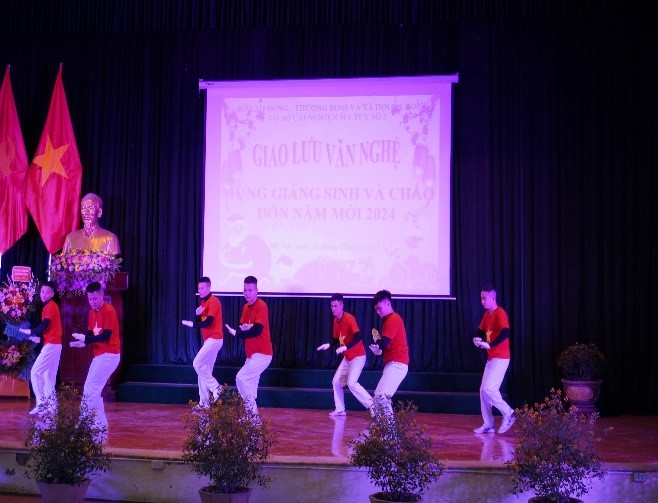 Phát biểu tại buổi giao lưu, đông chí Trần văn Bích - Phó Bí thư Đảng ủy, Phó Giám đốc Cơ sở nhấn mạnh: năm 2024 có thể coi là năm bản lề về kỷ cương hành chính. Cho nên, ngay từ những ngày đầu năm mới Cấp ủy, Ban Giám đốc yêu cầu các tổ chức chính trị của đơn vị phải vào cuộc và phát huy vai trò, trách nhiệm của mình trong việc thực hiện nhiệm vụ chính trị chung của đơn vị; 100% cán bộ, người cai nghiện chấp hành nghiêm túc nội quy, quy chế, quy tắc ứng xử. Chính vì vậy chương trình giao lưu văn nghệ mừng Giáng sinh và chào đón năm mới 2024 có sự tham gia của các tổ chức như: Công đoàn, Đoàn thanh niên, Nữ Công, hội Cựu chiến binh và các đội quản lý người cai nghiện. Với sự chuẩn bị công phu, sáng tạo các tổ chức, các đội quản lý người cai nghiện đã mang đến cho khán giả những tiết mục múa, hát đặc sắc, tạo không khí vui vẻ, nhộn nhịp.