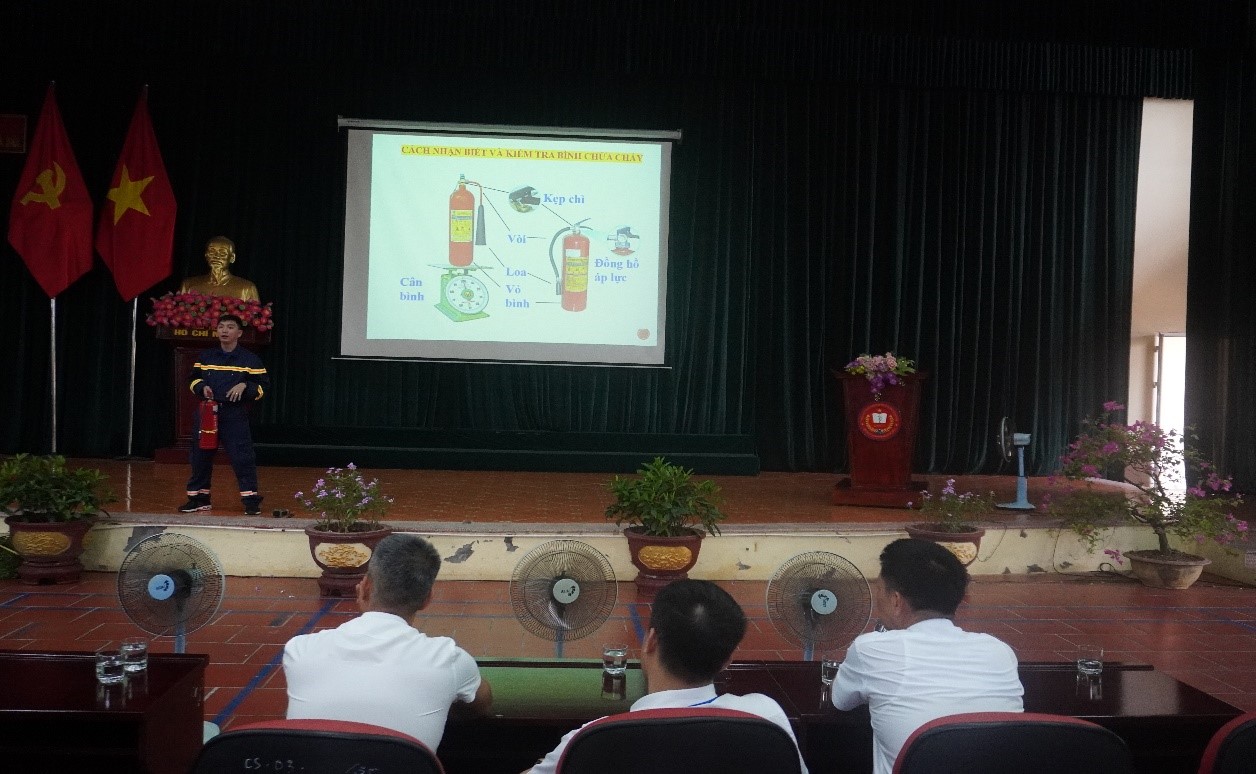 Tại buổi tập huấn, cán bộ, học viên được nghe đồng chí Thiếu tá Nguyễn Xuân Linh, giảng viên trường Đại học PCCC&CNCH phổ biến về những văn bản Luật liên quan đến công tác PCCC, thông tin về tình hình cháy nổ trong thời gian qua trên địa bàn Hà Nội, nguyên nhân xảy ra cháy, nổ và các biện pháp phòng ngừa; cách thức sử dụng, bảo quản, bảo dưỡng phương tiện PCCC&CNCH; thực hành sử dụng các phương tiện chữa cháy tại chỗ, dập tắt đám cháy, cứu người bị nạn và cứu tài sản. Qua buổi tập huấn đã trang bị cho cán bộ, học viên đơn vị những kiến thức cơ bản về PCCC&CNCH; rèn luyện kỹ năng xử lý tình huống do cháy, nổ gây ra; phát huy hiệu quả công tác PCCC theo phương châm 4 tại chỗ; tham gia chữa cháy kịp thời, tổ chức cứu nạn, cứu hộ có hiệu quả góp phần đảm bảo an toàn PCCC cho đơn vị. Cán bộ, học viên đơn vị được hướng dẫn cách xử lý khi có sự cố rò rỉ khí ga, sử dụng phương tiện chữa cháy tại chỗ để dập tắt đám cháy và đặc biệt là công tác thoát nạn khi có cháy xảy ra. Trong phần trao đổi, thảo luận đã có nhiều câu hỏi về công tác PCCC đã được cán bộ nhân viên của đơn vị quan tâm đặt ra và được cán bộ tập huấn giải đáp một cách cụ thể, rõ ràng. Ngoài ra, Ban tổ chức còn cho cán bộ, học viên được trực tiếp thực hành sử dụng các bình chữa cháy, hệ thống chữa cháy vách tường đã được trang bị tại đơn vị để dập tắt đám cháy. Qua đó, cán bộ, học viên nắm được các kiến thức cơ bản về công tác PCCC, để chủ động phòng ngừa, không để phát sinh cháy, nổ; đồng thời biết cách sử dụng các dụng cụ, phương tiện chữa cháy đã được trang bị tại cơ sở để kịp thời chữa cháy ngay từ ban đầu, khi mới phát sinh, không để xảy ra cháy lớn. Đây là một hoạt động rất thiết thực, có ý nghĩa quan trọng trong phong trào “Toàn dân tích cực tham gia PCCC” cần phổ biến đến toàn thể cán bộ, học viên trong đơn vị nhằm tạo chuyển biến lớn về ý thức PCCC.