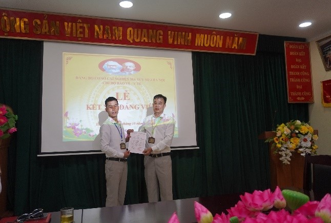 Phát biểu tại buổi Lễ, đồng chí Trần Văn Bích - Phó Bí thư Đảng ủy, Phó Giám đốc Cơ sở đã chúc mừng các đảng viên mới được đứng vào hàng ngũ của Đảng. Đồng chí cũng nhắn nhủ đảng viên mới luôn cố gắng rèn luyện, học hỏi, trau dồi đạo đức và phát huy tính tiên phong, gương mẫu của người đảng viên trong việc xây dựng chi bộ trong sạch, vững mạnh gắn với đơn vị vững mạnh toàn diện.