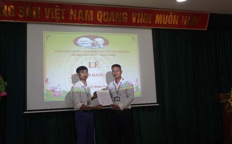 Đảng bộ Cơ sở Cai nghiện ma túy số 3 Hà Nội tổ chức Lễ kết nạp đảng viên mới cho quần chúng ưu tú của Chi bộ Giáo dục-Dạy nghề, Bảo vệ-Y tế