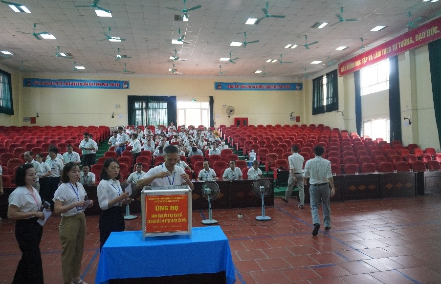 Hình ảnh: Công chức, viên chức, người lao động ủng hộ nhân dân trên địa bàn huyện sóc sơn do ảnh hưởng của cơn bão số 3