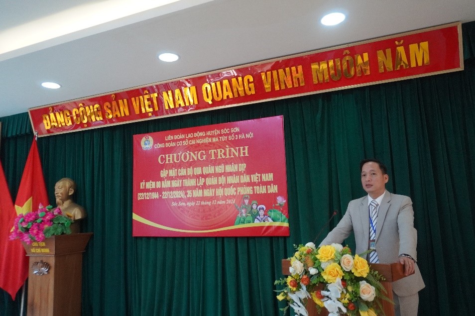 Ngày 22/12/2024, Công đoàn Cơ sở Cai nghiện ma túy số 3 Hà Nội tổ chức gặp mặt truyền thống kỷ niệm 80 năm ngày thành lập Quân đội nhân dân Việt Nam (22/12/1944 - 22/12/2024) và 35 năm ngày hội Quốc phòng toàn dân (22/12/1989 - 22/12/2024).