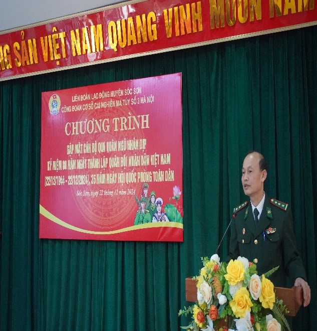 Công đoàn Cơ sở Cai nghiện ma túy số 3 Hà Nội tổ chức gặp mặt truyền thống kỷ niệm 80 năm ngày thành lập Quân đội nhân dân Việt Nam (22/12/1944 - 22/12/2024) và 35 năm ngày hội Quốc phòng toàn dân (22/12/1989 - 22/12/2024)
