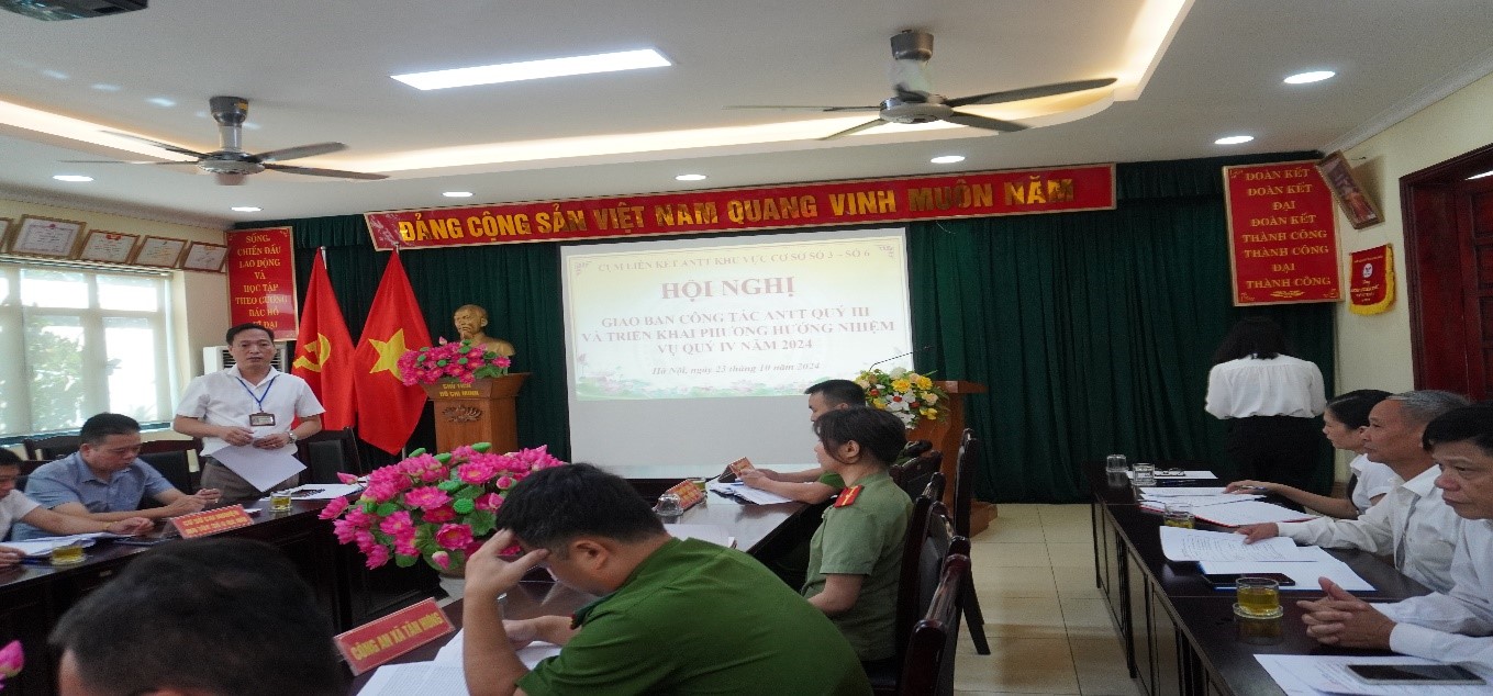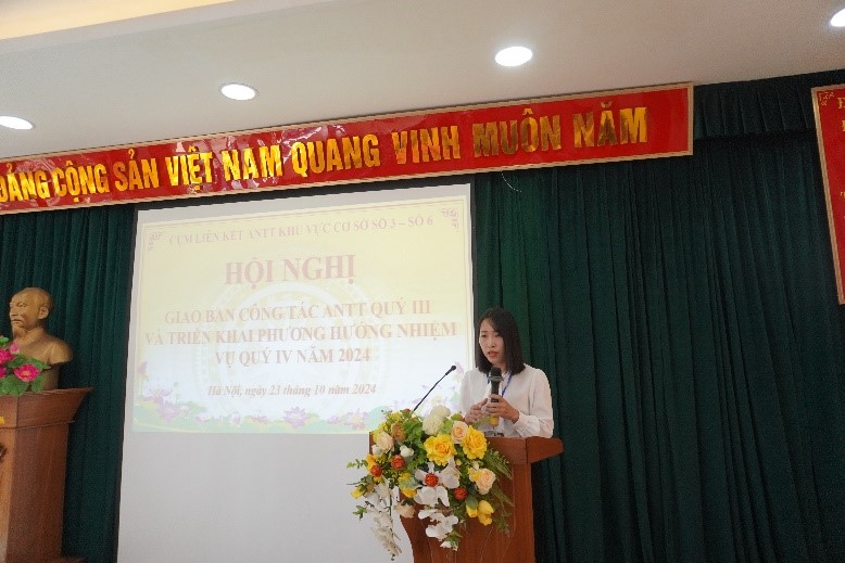 Tại hội nghị, thay mặt Đơn vị thường trực Cụm liên kết an ninh trật tự, đồng chí Đồng chí Lê Thu Ngân, Phó Trưởng phòng TCHC Cơ sở Cai nghiện ma túy số 3 Hà Nội đã thông qua báo cáo kết quả công tác cụm liên kết an ninh trật tự quý III và triển khai phương hướng, nhiệm vụ trọng tâm quý IV năm 2024 với nhiều nội dung, trong đó tập trung hiệu quả công tác tuyên truyền; Công tác phối hợp đảm bảo an ninh trật tự; Công tác phong trào đoàn thể và công tác xã hội. Cụm liên kết ANTT khu vực Cơ sở cai nghiện số 3 - số 6 đã phối hợp triển khai đồng bộ các biện pháp đảm bảo tốt ANTT. Trong quý III năm 2024, các Đơn vị trong Cụm đã hoàn thành tốt các chỉ tiêu, nhiệm vụ được giao về mọi mặt như: Tình hình an ninh chính trị; tình hình trật tự an toàn xã hội; các mặt công tác như công tác tuyên truyền, công tác phối hợp xây dựng cụm an ninh liên kết, công tác đảm bảo trật tự an toàn giao thông, công tác phong trào đoàn thể và công tác xã hội. Ngoài ra, các thành viên trong Cụm liên kết đã chủ động đẩy mạnh hoạt động phối hợp đảm bảo an ninh trật tự, phòng chống cháy, nổ. Công tác phối hợp, trao đổi thông tin giữa các Đơn vị trong cụm luôn nhịp nhàng, thông suốt và kịp thời.