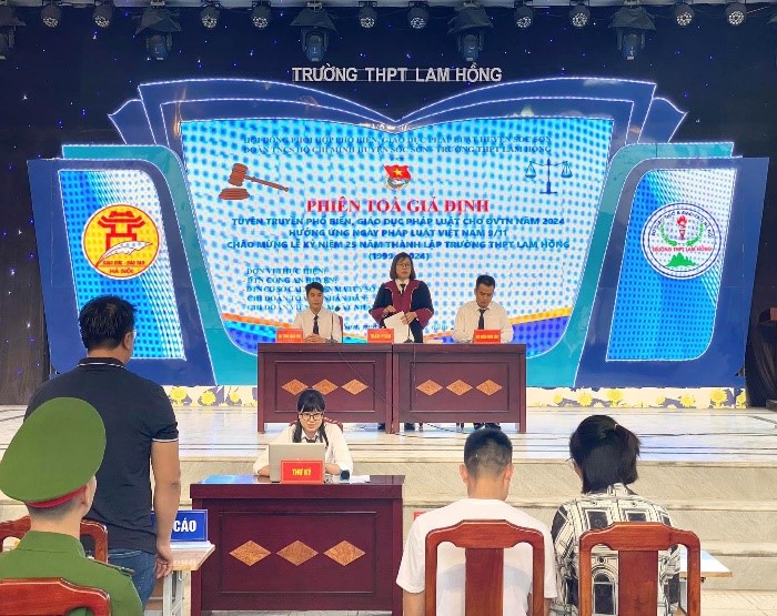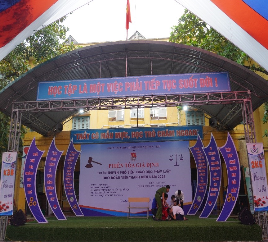Nhằm đẩy mạnh việc tuyên truyền, phổ biến, giáo dục Pháp luật nâng cao nhận thức, ý thức trách nhiệm của đoàn viên thanh niên trong chấp hành, tuân thủ các quy định Pháp luật, xây dựng lối sống văn hóa; đồng thời, hưởng ứng ngày Pháp luật Việt Nam 9/11. Ngày 06,07/11/2024, Đoàn thanh niên Cơ sở Cai nghiện ma túy số 3 Hà Nội phối hợp với Đoàn thanh niên Viện kiểm sát nhân dân huyện, Đoàn thanh niên Toà án nhân dân huyện, Đoàn thanh niên Công an huyện Sóc Sơn tổ chức 02 phiên toà giả định tại 02 Trường THPT Lam Hồng và Trung tâm GDNN - GDTX huyện Sóc Sơn.